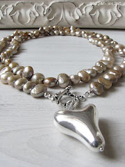 Vaalean tinan sävyisiä makeanvedenhelmiä, lukko balin hopeaa, metallisydän.